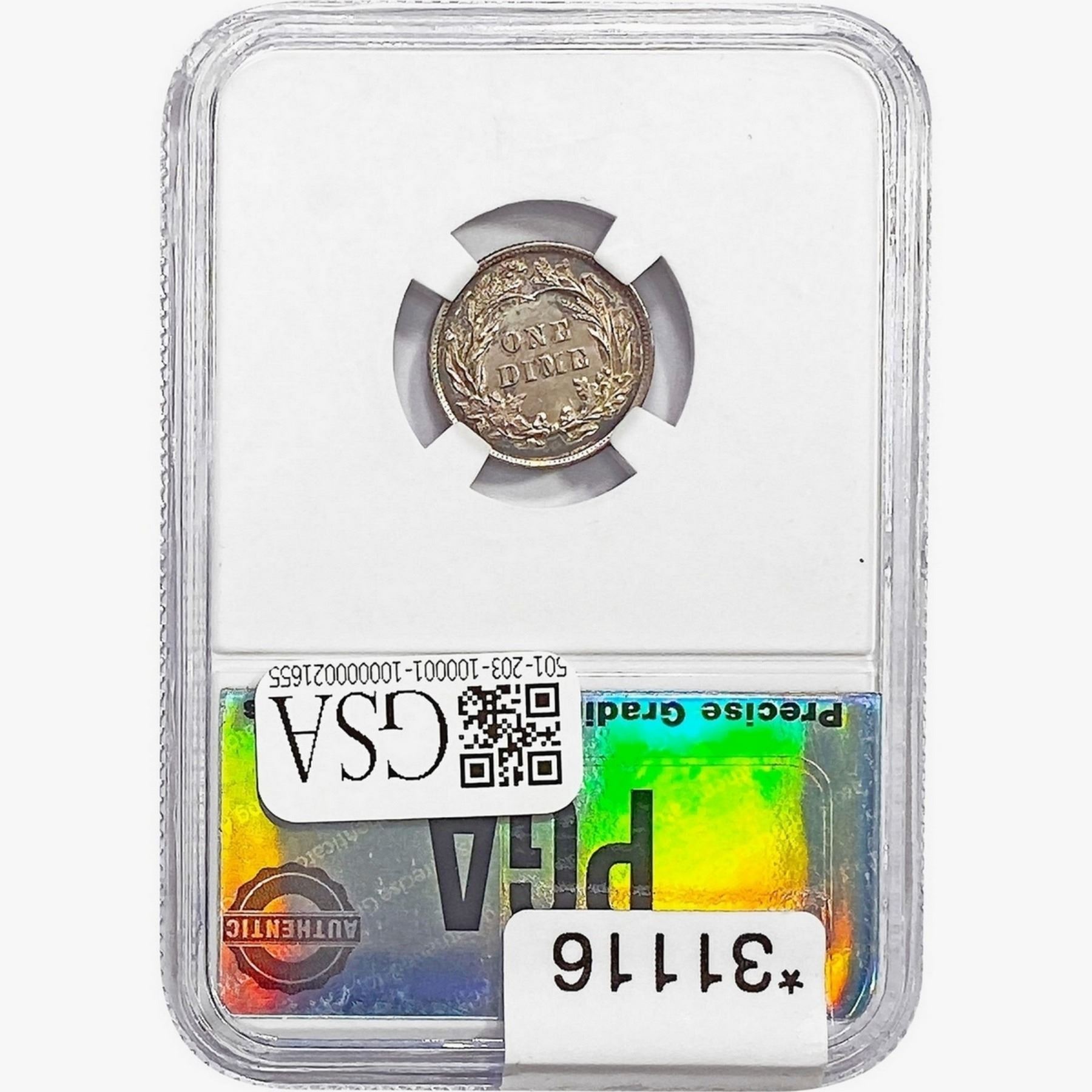 COINS AND CURRENCY LISTED IN GSA’S CATALOG AS GRADED AND ENCAPSULATED BY PCGS, NGC, ANACS, ICG, PCGS CURRENCY, PMG, PCGS BANKNOTE GRADING, CMC OR ANY OTHER THIRD-PARTY GRADING SERVICE ARE LIKEWISE SOLD “AS-IS” EXCEPT AS EXPRESSLY SET FORTH HEREIN. ALL THIRD-PARTY GRADING SERVICE GUARANTEES, INCLUDING AUTHENTICITY, ARE THE SOLE RESPONSIBILITY OF THE THIRD-PARTY GRADING SERVICE AND NOT WARRANTIES OR GUARANTEES OF GSA. BIDDERS SHOULD CONTACT THESE THIRD-PARTY GRADING SERVICES DIRECTLY WITH RESPECT TO ANY CLAIMS OR QUESTIONS THEY MAY HAVE CONCERNING THEIR GUARANTEES AND WARRANTIES. BIDDERS ACKNOWLEDGE AND AGREE THAT AUCTIONEER IS NOT BOUND BY OR LIABLE FOR ANY OPINION OR CERTIFICATION BY ANY THIRD-PARTY GRADING SERVICE. REMOVAL OF A PRODUCT FROM ITS PROTECTIVE CASING OR HOLDER OR ALTERATION OF ANY COIN HOLDER WAIVES ALL RIGHTS CONCERNING THE PRODUCT CONTAINED THEREIN.