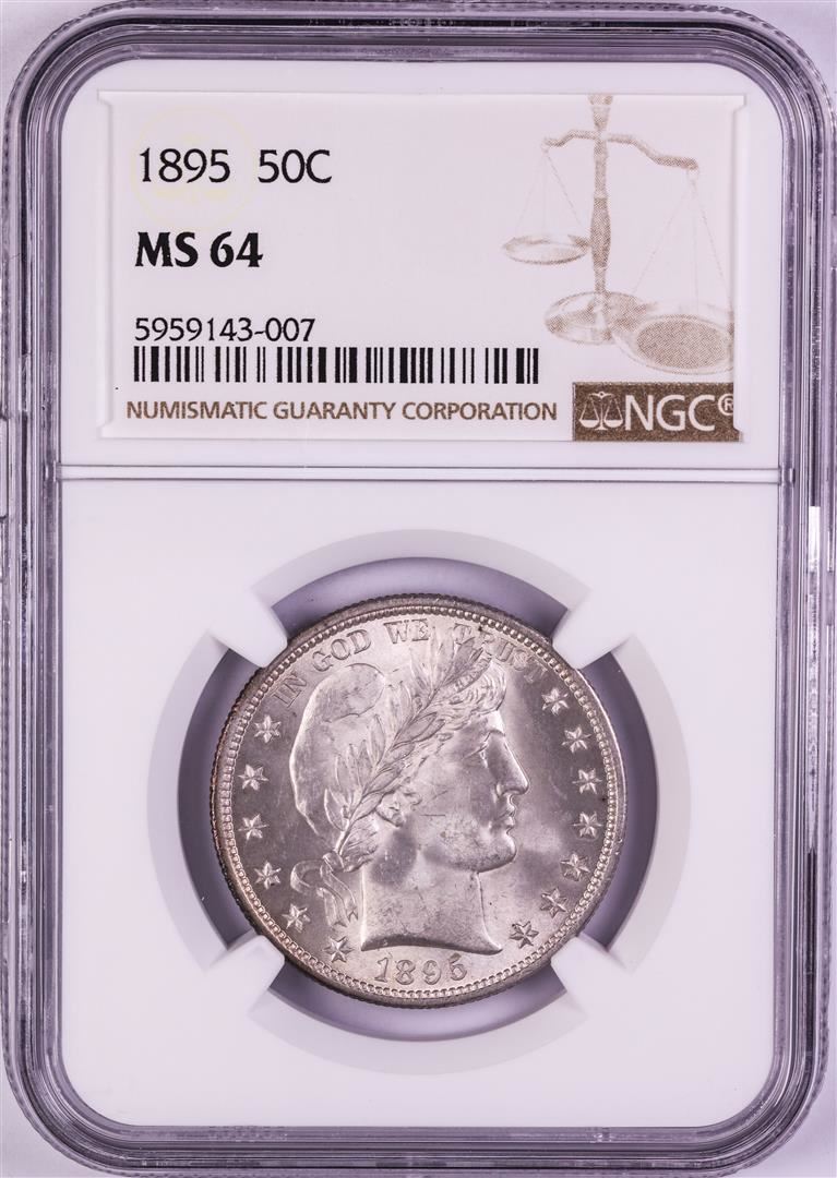 One 1895 Barber Half Dollar Coin NGC MS64. NGC Certified.