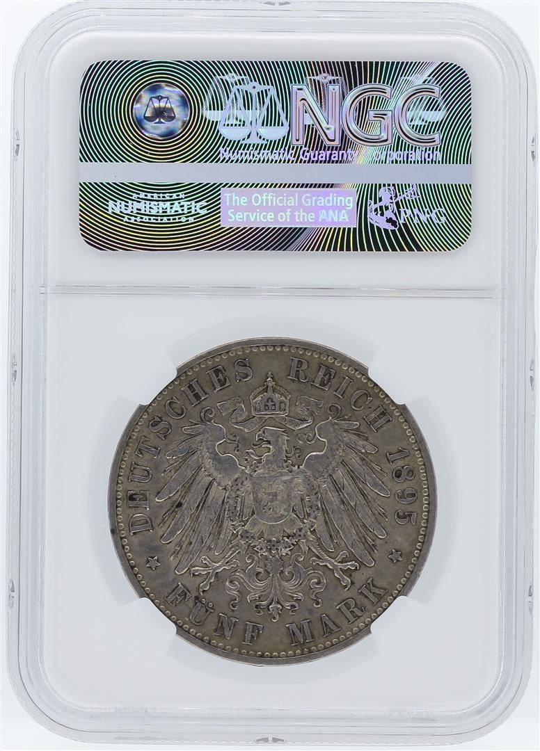 One 1895-E NGC AU53 Germany 5M Saxony Coin. NGC Certified.