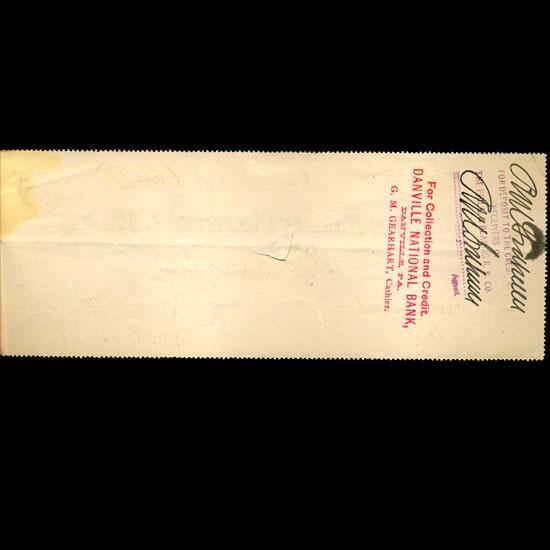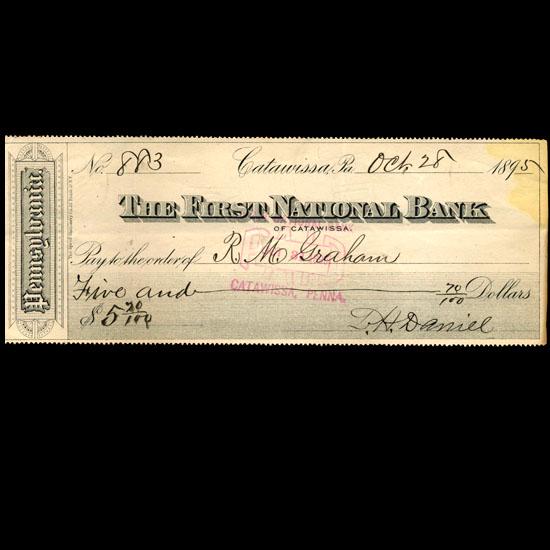 Rare 1895 original bank cashiers check with excellent printed "Pennsylvania" design