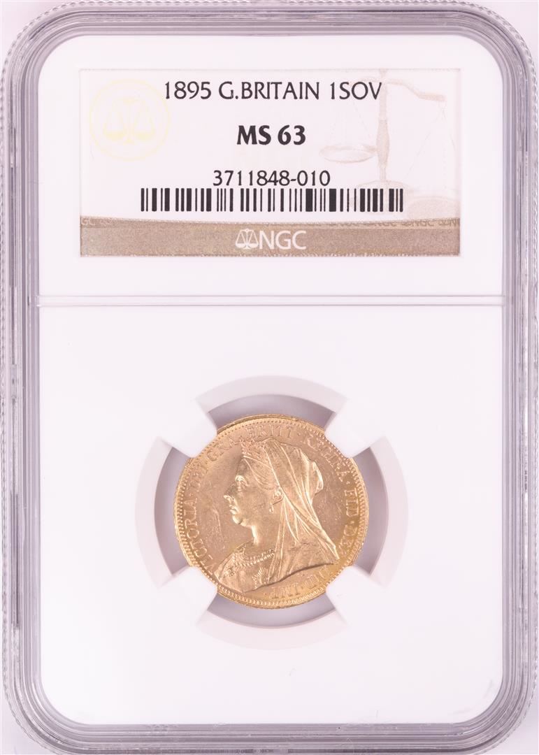 One 1895 Great Britain 1 Sovereign Gold Coin NGC MS63. NGC Certified.