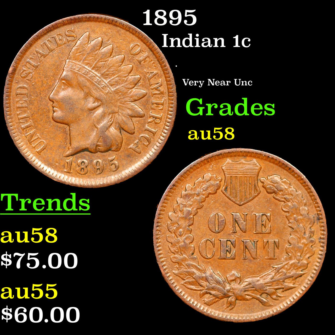 1895 Indian Cent 1c Grades Choice AU/BU Slider.