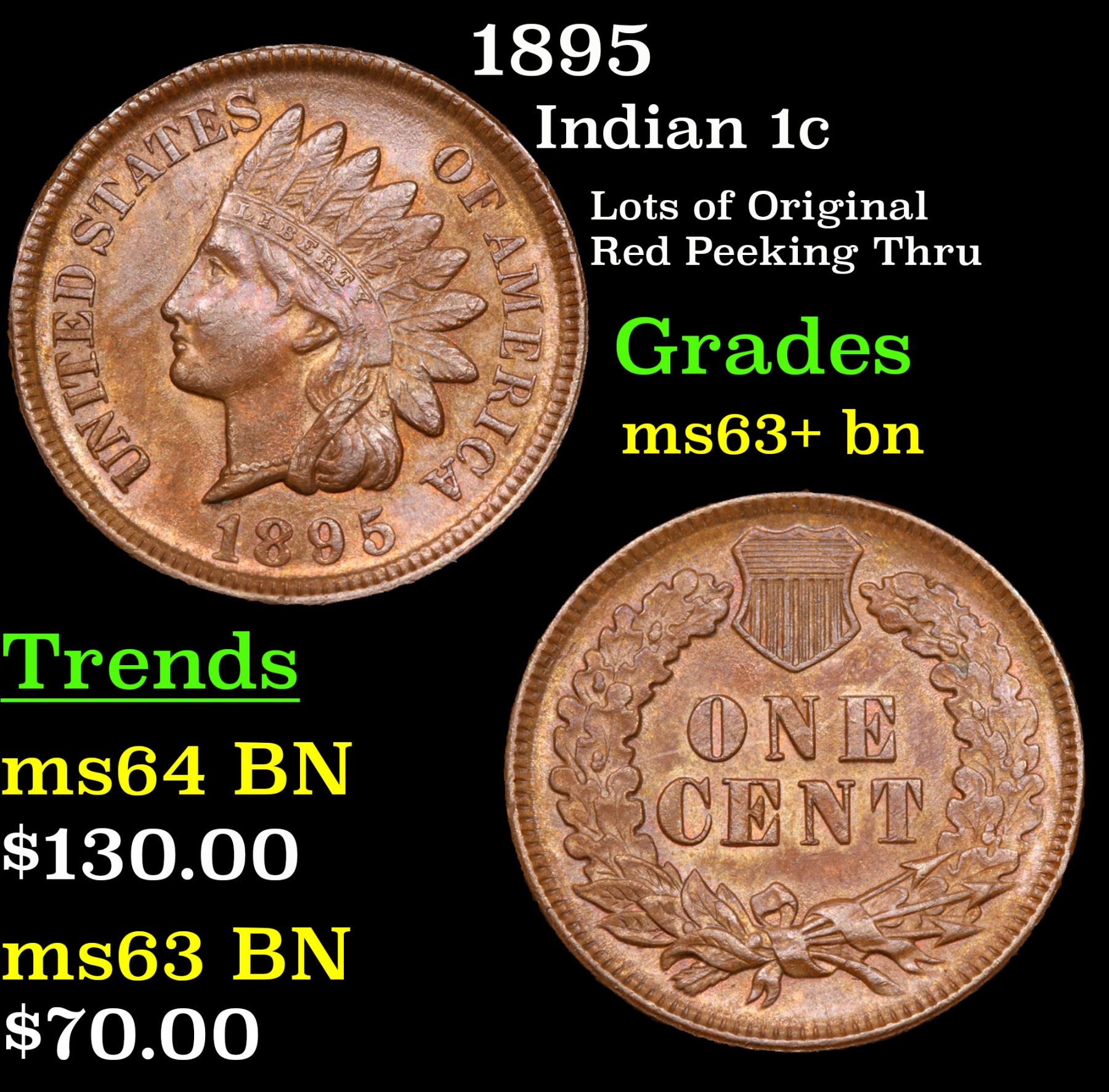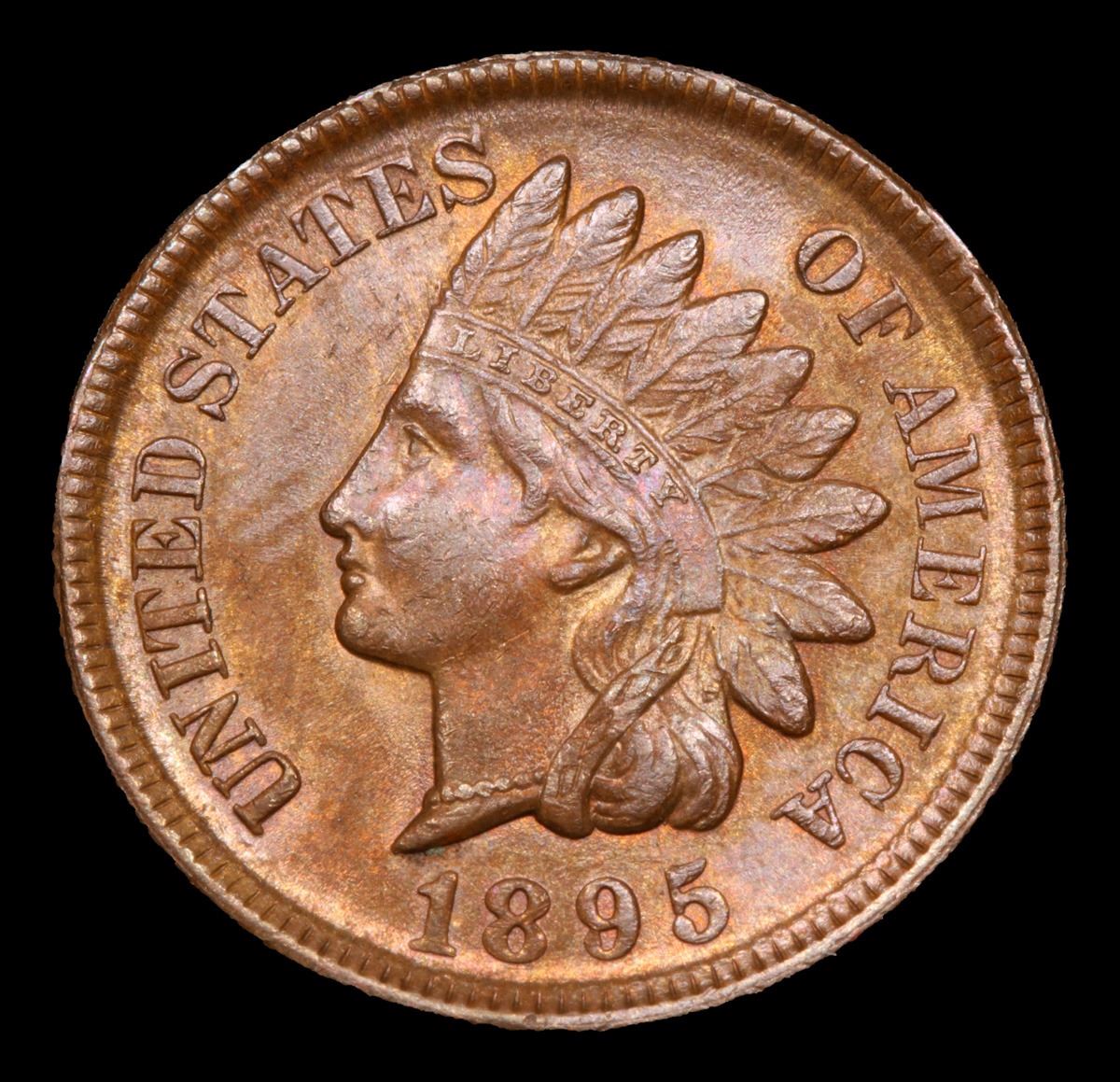 1895 Lots of Original Red Peeking Thru . Indian Cent 1c Grades Select+ Unc BN.