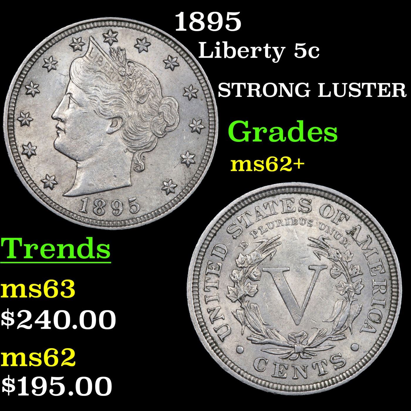 1895 Liberty Nickel 5c Grades Select Unc.