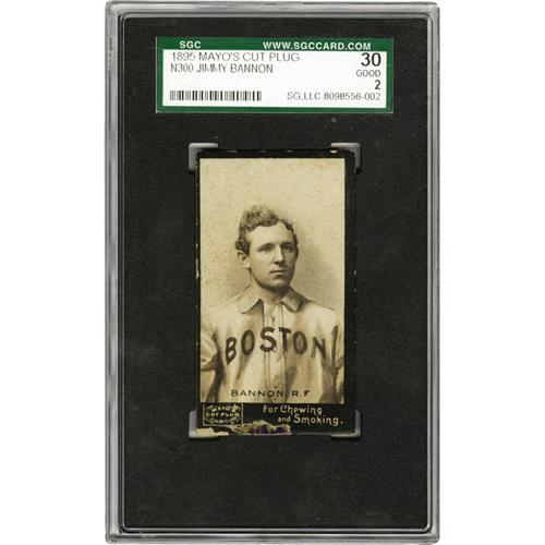 <B>1895 Mayo's Cut Plug N300 Jimmy Bannon SGC Good 30.</B></I> The Boston Beaneaters outfielder earned a top ten ranking in doubles the season this card was issued. Wear to the bottom black border accounts for the majority of points lost here, as the image area is particularly clean for this ancient issue.<BR><BR><b>Shipping:</b> Sportscard (<a target="_blank" href="http://www.heritageauctions.com/common/shipping.php">view shipping information</a>)