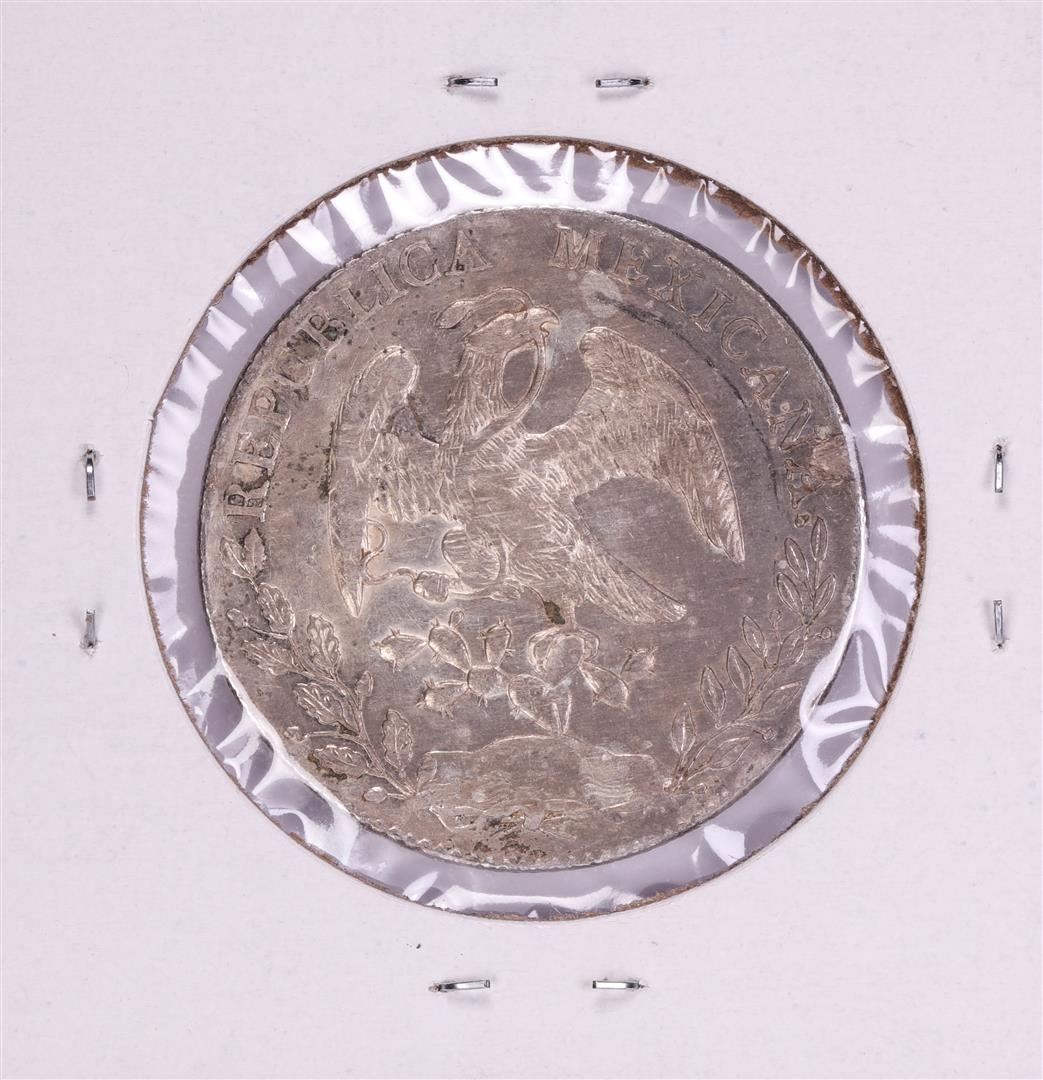 One 1895 Mo AM Mexico 8 Reales Silver Coin.