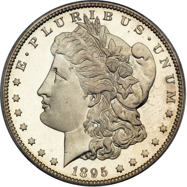 1895 Morgan Dollar. PCGS graded Proof 65 Cameo. A lovely white gem cameo. Only 880 minted of which merely 355 examples are estimated to have survived. Rarest of the rare in the Morgan series, considered by all to be the King of the Morgan Dollars and for obvious reasons, only 880 Proofs were minted and it is from these few that tens of thousands of collectors, if not hundreds of thousands of collectors, must vie with one another for ownership of the small floating supply on the market at any one time.