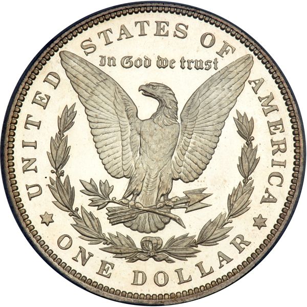 The coin is, quite simply, a stand-out. As can be seen in the photographs, it retains its fresh white brilliance of color throughout the years it spent with devoted collectors. Where some are toned from contact with the sulfur mint paper in which these where wrapped, few today sparkle like this gorgeous Proof 65 1895. Faithful to every detail from a full blow by the dies, the hair is crystal clear down to the tiniest strand, and this includes the curls above the ear; included also in this full blow by the dies, a resplendent eagle, proud and assured, with full-featured wings stretched wide and a nice feather-covered chest projecting from the central part of this side of the design. The coin itself, grading Proof 65, is set in a PCGS "Cameo" holder and will forever remind us just how spectacular these early Morgan dollars were in Proof condition the day they were made. Don?t let the current active market price dissuade you from bidding. As seems inevitable whenever a great rarity like a Gem Proof 1895 Morgan dollar changes hands, the interest and value only intensifies, year upon year. Pop 11; 8 finer, 1 in 65+, 2 in 66, 5 in 67 (PCGS # 87330) .