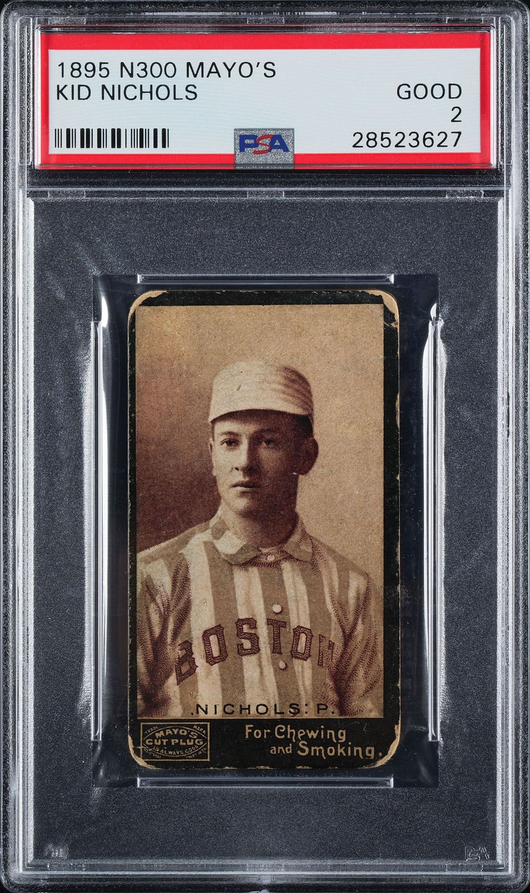 Graded by PSA GOOD 2. Evenly rounded corners, with no creases, clean surfaces front and back. Rare to find a card graded a PSA 2 with no paper loss with this quality eye appeal. Superb image with tremendous contrast.