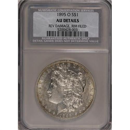 <B>1895-O $1 --Reverses Damaged, Rim Filed--NCS. AU Details.</B></I> NGC Census: (0/0). PCGS Population (0/0). Mintage: 450,000. (#7236)<BR><BR><B>Coin Engraver:</B> George T. Morgan<BR><BR><b>Shipping:</b> Coins & Currency (<a target="_blank" href="http://www.heritageauctions.com/common/shipping.php">view shipping information</a>)