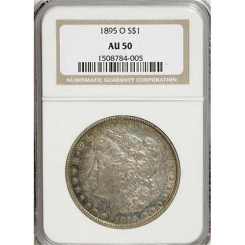 <B>1895-O $1 AU50 NGC.</B></I> A pleasing fray-brown example with sea-green and iridescent toning on each side, the reverse slightly lighter in general appearance. A single mark on Liberty's cheek is the only mark of consequence.<BR><BR><B>Coin Engraver:</B> George T. Morgan<BR><BR><b>Shipping:</b> Coins & Currency (<a target="_blank" href="http://www.heritageauctions.com/common/shipping.php">view shipping information</a>)