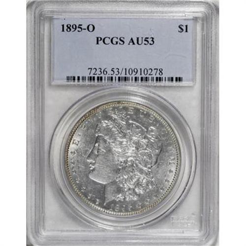 <B>1895-O $1 AU53 PCGS.</B></I> Reasonably well struck for this key New Orleans issue, with a curiously brilliant obverse paired with deep gunmetal and lavender coloration on the reverse.<BR><BR><B>Coin Engraver:</B> George T. Morgan<BR><BR><b>Shipping:</b> Coins & Currency (<a target="_blank" href="http://www.heritageauctions.com/common/shipping.php">view shipping information</a>\)