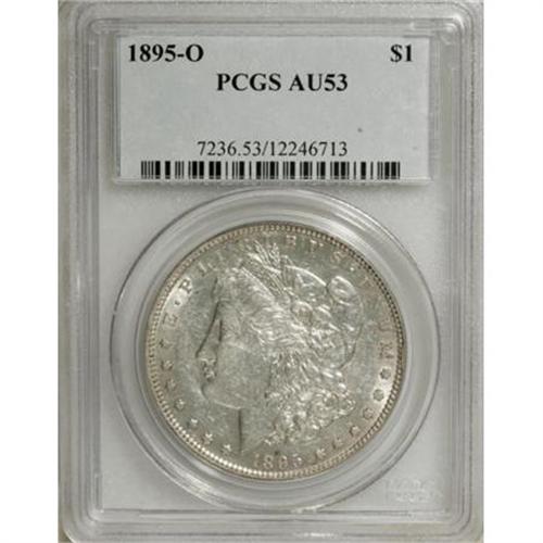 <B>1895-O $1 AU53 PCGS.</B></I> Minimally toned with ample intact luster and just a touch of wear on the highpoints of the well struck devices. A number of light abrasions pepper the surfaces, but no marks that warrant individual mention appear on either side.<BR><BR><B>Coin Engraver:</B> George T. Morgan<BR><BR><b>Shipping:</b> Coins & Currency (<a target="_blank" href="http://www.heritageauctions.com/common/shipping.php">view shipping information</a>)