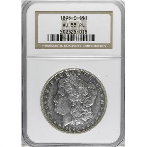 <B>1895-O $1 AU55 Prooflike NGC.</B></I> Glimpses of orange patina cling to the obverse periphery, but this partly lustrous key date O-mint dollar is otherwise untoned. Crisply struck, and marks are unimportant aside from a thin horizontal mark above the eagle's head. Census: 19 in 55 Prooflike, 34 finer (6/07).<BR><I>From the Diamond Head Collection.</B></I><BR><BR><B>Coin Engraver:</B> George T. Morgan<BR><BR><b>Shipping:</b> Coins & Currency (<a target="_blank" href="http://www.heritageauctions.com/common/shipping.php">view shipping information</a>\)