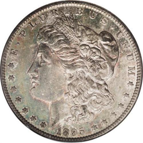 <B>1895-O $1 AU58 NGC.</B></I> The scarcity of the 1895-O dollar is beyond question in the Morgan series, and the AU58 grade level is the breaking point for availability and price for this issue. Several hundred pieces have been certified, but most near-Mint examples are only available in major offerings of dollars in public auctions. Above this, at the MS60 and finer level, the 1895-O is a major condition rarity with only a few dozen pieces known. This piece retains generous amounts of mint luster, especially on the reverse. Both sides are enveloped in rich green, rose, and gray toning. The only mentionable abrasion is located at the bottom of the eagle's breast.<BR><BR><B>Coin Engraver:</B> George T. Morgan<BR><BR><b>Shipping:</b> Coins & Currency (<a target="_blank" href="http://www.heritageauctions.com/common/shipping.php">view shipping information</a>)