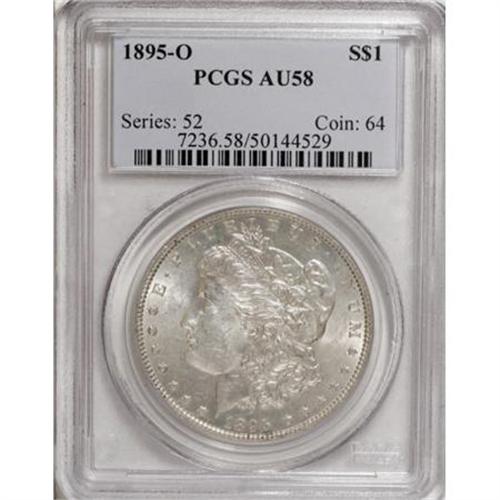 <B>1895-O $1 AU58 PCGS.</B></I> A borderline Mint State example with light tan toning over lustrous silver surfaces. The difference in value between AU58 and MS60 examples of this date is extreme. Many collectors working on complete Morgan dollar sets would be delighted to own an example such as this, and now have just such an opportunity. This coin would not look blatantly out of place when placed in a collection of Mint State Morgans, which cannot be said for all AU58 coins. A single obverse scratch from Liberty's chin to the rim is noted, but it is only visible at certain angles.<BR><I>From The Motor City Collection.</B></I><BR><BR><B>Coin Engraver:</B> George T. Morgan<BR><BR><b>Shipping:</b> Coins & Currency (<a target="_blank" href="http://www.heritageauctions.com/common/shipping.php">view shipping information</a>)