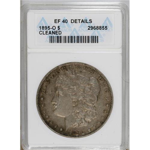 <B>1895-O $1 --Cleaned--ANACS. XF40 Details.</B></I> NGC Census: (169/1932). PCGS Population (238/1783). Mintage: 450,000. Numismedia Wsl. Price for NGC/PCGS coin in XF40: $725. (#7236)<BR><BR><b>Shipping:</b> Coins & Currency (<a target="_blank" href="http://www.heritageauctions.com/common/shipping.php">view shipping information</a>)