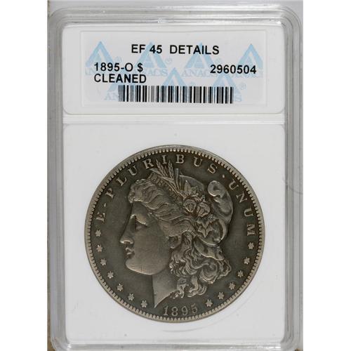 <B>1895-O $1 --Cleaned--ANACS. XF45 Details.</B></I> NGC Census: (471/1450). PCGS Population (496/1288). Mintage: 450,000. Numismedia Wsl. Price: $891. (#7236)<BR><BR><b>Shipping:</b> Coins & Currency (<a target="_blank" href="http://www.heritageauctions.com/common/shipping.php">view shipping information</a>)