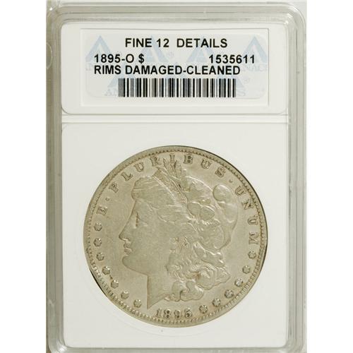 <B>1895-O $1 --Cleaned, Rim Damaged--ANACS. Fine 12 Details.</B></I> NGC Census: (104/5249). PCGS Population (44/2458). Mintage: 450,000. Numismedia Wsl. Price for NGC/PCGS coin in F12: $333. (#7236)<BR><BR><b>Shipping:</b> Coins & Currency (<a target="_blank" href="http://www.heritageauctions.com/common/shipping.php">view shipping information</a>)