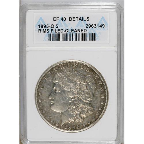 <B>1895-O $1 --Cleaned, Rim Filed--ANACS. XF40 Details.</B></I> NGC Census: (169/1932). PCGS Population (238/0). Mintage: 450,000. Numismedia Wsl. Price for NGC/PCGS coin in XF40: $725. (#7236)<BR><BR><b>Shipping:</b> Coins & Currency (<a target="_blank" href="http://www.heritageauctions.com/common/shipping.php">view shipping information</a>)