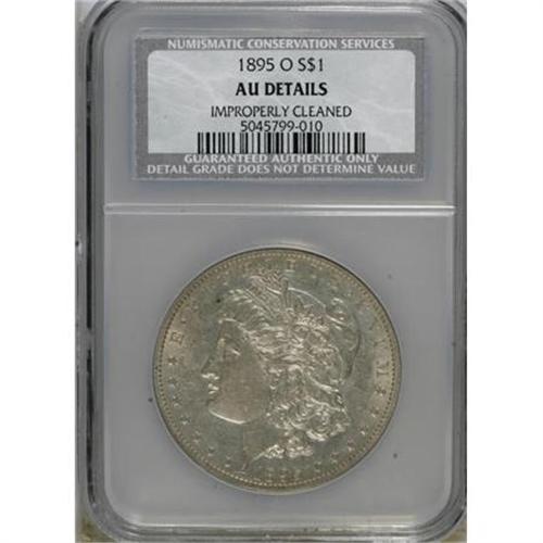 <B>1895-O $1 --Improperly Cleaned--NCS. AU Details.</B></I> Fine hairlines are visible on the light golden-gray surfaces, more so on the obverse, and traces of luster reside in the recesses, particularly on the reverse. Typically struck, with weak central areas.<BR><BR><B>Coin Engraver:</B> George T. Morgan<BR><BR><b>Shipping:</b> Coins & Currency (<a target="_blank" href="http://www.heritageauctions.com/common/shipping.php">view shipping information</a>)