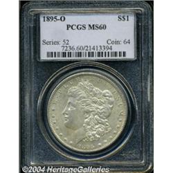 <table><tbody><tr><td><table> <TR><TD width="100%"><TABLE cellSpacing=1 cellPadding=3 width="100%" border=0><TBODY><TR><TD width="100%" bgColor=#79735c><FONT face=arial color=#ffffff size=3><B>Description</B> </FONT></TD></TR><TR><TD width="100%" bgColor=#ffffff><FONT face=arial size=2><B>1895-O $1 MS60 PCGS.</B></I> This rare, key date issue has bright, satiny luster and is well struck on both sides, for a New Orleans product, although minor weakness above Liberty's ear is acknowledged for the sake of accuracy. There are a number of small marks peppered across the surfaces, but none are singularly distracting. Very rare in Mint State, and of obvious importance to the Morgan Dollar specialist. In 1993, Q. David Bowers said "In lower Mint State levels from MS60 to MS63, this is the rarest New Orleans Mint dollar today."<BR><I>From The Phillip Wertheimer Collection.</B></I> </FONT></TD></TR></TBODY></TABLE></TD></TR></TBODY></TABLE><BR><A name=PricesRealized></A><TABLE cellSpacing=0 cellPadding=0 width="100%" bgColor=#000000 border=0><TBODY><TR><TD width="100%"><TABLE cellSpacing=1 cellPadding=3 width="100%" border=0><TBODY><TR><TD width="100%" bgColor=#79735c><A name=PR><FONT face=arial color=#ffffff size=3><B>Previous Prices from Heritage Auctions</B> </FONT></A></TD></TR><TR><TD bgColor=#f6f6ed><TABLE cellSpacing=0 cellPadding=0 width="100%" border=1><TBODY><TR><TD align=middle width="33%"><B>Date</B></TD><TD align=middle width="33%"><B>Service</B></TD><TD align=middle width="33%"><B>Price</B></TD></TR><TR bgColor=whitesmoke><TD width="33%"><B>08/07/1998</B></TD><TD width="33%">PCGS</TD><TD width="33%">$6,612.50</TD></TR><TR bgColor=whitesmoke><TD width="33%"><B>08/01/1995</B></TD><TD width="33%">PCGS</TD><TD width="33%">$6,600.00</TD></TR></TBODY></TABLE></TD></TR><TR><TD bgColor=#ffffff><FONT face=arial size=1 ?>PLEASE NOTE: All prices realized reflect the final hammer price PLUS the buyer's premium in auctions that charge a buyer's premium. Each item has a notation at the top of the listing indicating whether that lot included a buyer's premium. Example: A item that sells with a final hammer price of $100 and a 20% buyer's premium will display with a price realized of $120. All information listed is intended to be as accurate as possible, but errors are possible. Please use this guide carefully and inform us of any inaccuracies. </FONT></TD></TR></TBODY></TABLE></TD></TR></TBODY></TABLE><BR><TABLE cellSpacing=0 cellPadding=0 width="100%" bgColor=#000000 border=0><TBODY><TR><TD width="100%"><TABLE cellSpacing=1 cellPadding=3 width="100%" border=0><TBODY><TR><TD width="100%" bgColor=#79735c colSpan=6><FONT face=arial color=#ffffff size=3><B>Price Guide*</B> </FONT></TD></TR><TR bgColor=#f6f6ed><TD align=middle><B>Grade</B> </TD><TD align=middle><B>Coin World<BR>(Trends)</B> </TD><TD align=middle><B>Numismedia<BR>Retail</B> </TD><TD align=middle><B>Numismedia<BR>Wholesale</B> </TD><TD align=middle><B>Coin<BR>Universe</B> </TD><TD align=middle><B>Heritage<BR>Value Index</B> </TD></TR><TR bgColor=#ffffff><TD align=middle>58</TD><TD align=right>$2,500.00</TD><TD align=right>---</TD><TD align=right>$3,050.00</TD><TD align=right>---</TD><TD align=right>$4,144.15</TD></TR><TR style="FONT-WEIGHT: bold" bgColor=#cccfdd><TD align=middle>60</TD><TD align=right>$12,000.00</TD><TD align=right>---</TD><TD align=right>$8,625.00</TD><TD align=right>$12,000.00</TD><TD align=right>$8,462.50</TD></TR><TR bgColor=#ffffff><TD align=middle>61</TD><TD align=right>---</TD><TD align=right>---</TD><TD align=right>$10,250.00</TD><TD align=right>$18,500.00</TD><TD align=right>$11,810.00</TD></TR><TR bgColor=#ffffff><TD colSpan=6><FONT size=1>*All information listed is intended to be as accurate as possible, but errors are possible. No item may be returned or refused based on this information which is provided as a service to our customers. You should contact each pricing source directly to determine the accuracy of this information. </FONT></TD></TR></TBODY></TABLE></TD></TR></TBODY></TABLE><BR><TABLE cellSpacing=0 cellPadding=0 width="100%" bgColor=#000000 border=0><TBODY><TR><TD width="100%"><TABLE cellSpacing=1 cellPadding=3 width="100%" border=0><TBODY><TR><TD width="100%" bgColor=#79735c><FONT face=arial color=#ffffff size=3><B>Population Guide</B> </FONT></TD></TR><TR bgColor=#ffffff><TD align=middle><!-- Begin Output of Population Grid--><TABLE cellSpacing=0 cellPadding=0 width="100%" border=0><TBODY><TR><TD vAlign=center><TABLE cellSpacing=0 width="100%" border=1 cellsadding="3"><TBODY><TR><TD vAlign=center><TABLE cellSpacing=0 cellPadding=3 width="100%" border=1><TBODY><TR><TD vAlign=center align=middle bgColor=#f0f1e8 colSpan=2 <CENTER><FONT face=Arial size=2><B>PCGS Pop </B></FONT><CENTER></CENTER></TD><TD vAlign=center align=middle bgColor=#f0f1e8 colSpan=2><CENTER><FONT face=Arial size=2><B>NGC Pop</B></CENTER></FONT></TD></TR><TR><TD vAlign=center><FONT face=Arial size=2>(60)</FONT> </TD><TD vAlign=center align=right><FONT face=Arial size=2>20</FONT> </TD><TD vAlign=center><FONT face=Arial size=2>(60)</FONT> </TD><TD vAlign=center align=right><FONT face=Arial size=2>14</FONT> </TD></TR><TR><TD vAlign=center><FONT face=Arial size=2>(>60)</FONT> </TD><TD vAlign=center align=right><FONT face=Arial size=2>71</FONT> </TD><TD vAlign=center><FONT face=Arial size=2>(>60)</FONT> </TD><TD vAlign=center align=right><FONT face=Arial size=2>64</FONT> </TD></TR></TBODY></TABLE></TD></TR></TBODY></TABLE></TD></TR></TBODY></TABLE><!-- End Output of Population Grid--></TD></TR></TBODY></TABLE></TD></TR></TBODY></TABLE><BR><TABLE cellSpacing=0 cellPadding=0 width="100%" bgColor=#000000 border=0><TBODY><TR> <font color='#000000'><span style='background-color: #FFFFFF'><td bgcolor='#FFFFFE'> Important notice: Heritage usually auctions material at the rate of 200-250 lots per hour. On some occasions eBay Live bid software or the Internet may not be able to keep up with the pace of the auction. We recommend placing a rea