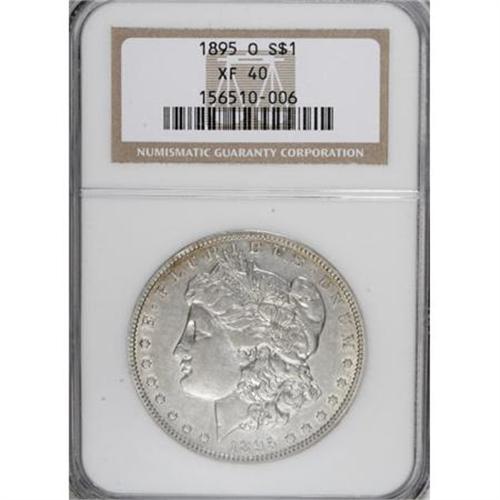 <B>1895-O $1 XF40 NGC.</B></I> NGC Census: (182/2021). PCGS Population (249/1826). Mintage: 450,000. Numismedia Wsl. Price for NGC/PCGS coin in XF40: $710. (#7236)<BR><BR><B>Coin Engraver:</B> George T. Morgan<BR><BR><b>Shipping:</b> Coins & Currency (<a target="_blank" href="http://www.heritageauctions.com/common/shipping.php">view shipping information</a>)