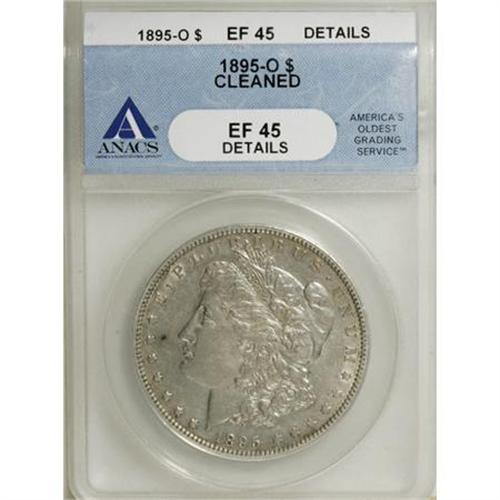 <B>1895-O $1 --Cleaned--ANACS XF45 Details.</B></I> NGC Census: (518/1569). PCGS Population (536/1392). Mintage: 450,000. Numismedia Wsl. Price for NGC/PCGS coin in XF45: $824. (#7236)<BR><BR><B>Coin Engraver:</B> George T. Morgan<BR><BR><b>Shipping:</b> Coins & Currency (<a target="_blank" href="http://www.heritageauctions.com/common/shipping.php">view shipping information</a>)