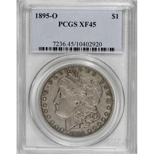 <B>1895-O $1 XF45 PCGS.</B></I> The blue-gray surfaces of this dollar retain subtle luminosity at the margins. A well struck, lightly worn piece that shows areas of deeper color near the peripheral elements. An attractive example of this popular lower-mintage O-mint issue.<BR><BR><B>Coin Engraver:</B> George T. Morgan<BR><BR><b>Shipping:</b> Coins & Currency (<a target="_blank" href="http://www.heritageauctions.com/common/shipping.php">view shipping information</a>)