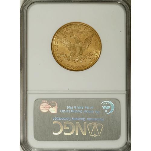 <B>1895-O $10 MS62 NGC.</B></I> A highly lustrous and well-defined example of this later New Orleans issue, largely yellow-gold with generous orange accents. Light to moderate abrasions appear on both sides, typical for this eagle issue. NGC has graded only eight finer pieces (4/07).<BR><BR><b>Shipping:</b> Coins & Currency (<a target="_blank" href="http://www.heritageauctions.com/common/shipping.php">view shipping information</a>)