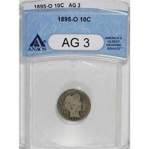 <B>1895-O 10C AG3 ANACS.</B></I> NGC Census: (9/112). PCGS Population (10/197). Mintage: 440,000. Numismedia Wsl. Price for NGC/PCGS coin in AG3 : $214. (#4807)<BR><BR><B>Coin Engraver:</B> Charles E. Barber<BR><BR><b>Shipping:</b> Coins & Currency (<a target="_blank" href="http://www.heritageauctions.com/common/shipping.php">view shipping information</a>)