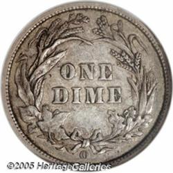 <B>1895-O 10C AU53 NGC.</B></I> The 1895-O is the key issue in the Barber Dime series (except, of course, for the prohibitively rare 1894-S). Only 440,000 pieces were struck, and high grade examples, such as this, are very elusive. This is a moderately toned specimen that retains some of the original mint luster and is well defined throughout. There are no large or obvious abrasions on either side, just the small marks and "fuzzy" appearance one associates with light circulation. Population: 4 in 53, 26 finer (2/05).