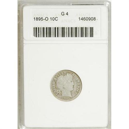 <B>1895-O 10C G4 ANACS.</B></I> . NGC Census: (10/105). PCGS Population (13/187). Mintage: 440,000. Numismedia Wsl. Price for NGC/PCGS coin in G4 : $380. (#4807)<BR><BR><B>Coin Engraver:</B> Charles E. Barber<BR><BR><b>Shipping:</b> Coins & Currency (<a target="_blank" href="http://www.heritageauctions.com/common/shipping.php">view shipping information</a>)