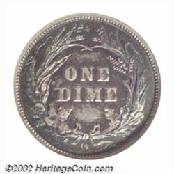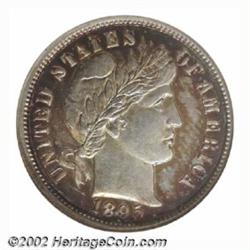1895-O 10C MS62 NGC. The 1895-O has a very limited mintage of only 440,000 pieces and a poor rate of survival, both of which have combined to make it a key in the Barber Dime series. This piece has much original brilliance interspersed with deeper hues of russet and aquamarine. Sharply defined. Population: 3 in 62, 14 finer (7/02). Important notice: We expect to be auctioning lots at the rate of 200-250 per hour. Sometimes eBay Premier live bid software cannot keep up with that pace, so we strongly recommend that you place a realistic proxy bid now as insurance to avoid disappointment. Also please note that all Heritage/CAA lots purchased through eBay Premier carry a 20% Buyer's Premium. Please make sure you read the Terms and Conditions.
