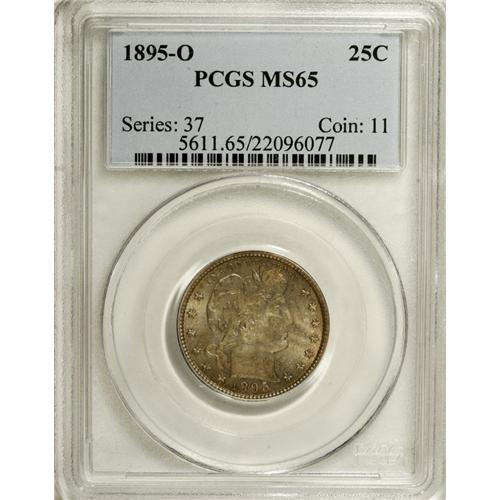 <B>1895-O 25C MS65 PCGS.</B></I> Subtle lavender, rose, and orange patina graces this softly lustrous Gem. Suitably struck with surprisingly well-preserved surfaces. Population: 6 in 65, 2 finer (12/06).<BR><BR><b>Shipping:</b> Coins & Currency (<a target="_blank" href="http://www.heritageauctions.com/common/shipping.php">view shipping information</a>)