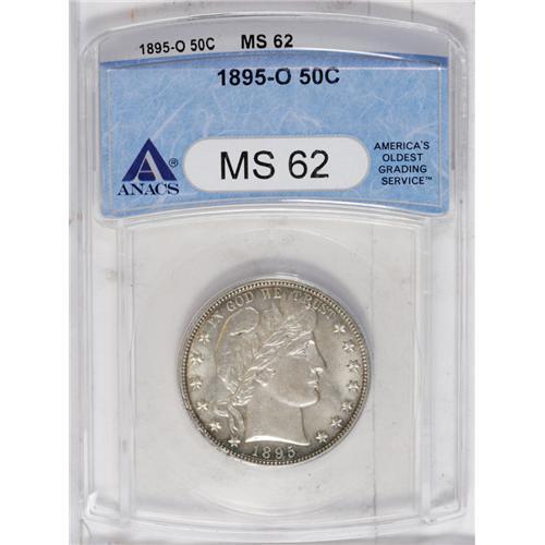 <B>1895-O<50C> MS62 ANACS.</B></I> A subtly lustrous example with nice detail and few marks for the grade. A thin, shallow abrasion is noted on the reverse that extends from the olive branch to the rim.