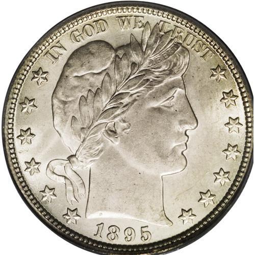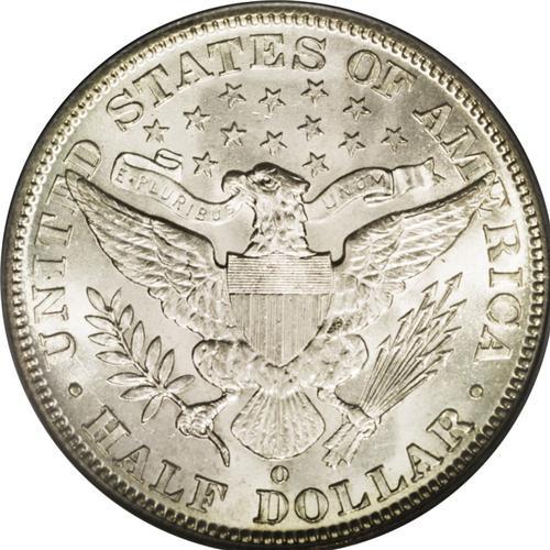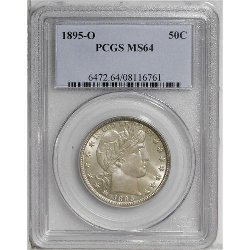 <B>1895-O<50C> MS64 PCGS.</B></I> Crisply struck and lustrous with a brilliant reverse and light olive-gray obverse toning. The 1895-O is among many Barber half issues that is commonplace in AG to Good grades, but is difficult to locate in Fine or better. In Mint State, PCGS has certified only 62 pieces, which presumably includes a number of resubmissions. Population: 17 in 64, 11 finer (8/06).