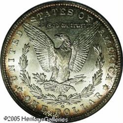 <B>1895-O<img border='0' src='http://www.heritagecoins.com/images/star.gif' width=10 height=10>$1 MS63 PCGS.</B></I> 1895 is perhaps the most legendary year in the entire Morgan Dollar series. Of course, much of this publicity is due to the mystery that surrounds Silver Dollar production at the Philadelphia mint this year. However, students of this series also recognize that the low mintage 1895-O and 1895-S are key issues that raise eyebrows in all Mint State grades. The New Orleans mint production was limited to only 450,000 pieces, a low mintage by the standards of any late 19th and 20th century silver series. The distribution of this issue is not unlike that of other O-mint issues from this era. A small number of coins, probably on the order of 100,000 pieces, were released into circulation in the South. The remainder of this mintage went into storage. The Pittman Act of 1918 must have taken an unusually high toll on this issue, as few Mint State examples emerged from Treasury holdings later in the century. Due to the limited original mintage, it is likely that most of the 1895-O Dollars went to the melting pot under the terms of this act. Circulated examples are scarce on today's market, and Mint State representatives are deservedly rare.<BR> The few Mint State survivors of this issue include a large percentage of poorly struck, lackluster, and/or heavily abraded coins. Quite well defined over the highpoints with appreciable satiny luster, this Select specimen is attractive in all regards. Delicate golden-rose and dove-gray iridescence lightly blankets both sides. There are a few wispy abrasions on the obverse, none of which are inconsistent with the MS63 grade. An important, high quality example of an issue that is difficult to find nicer. Population: 17 in 63, 16 finer (1/05). Lot:10474
