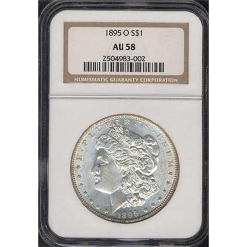<b>1895-O Morgan Dollar. NGC graded AU58.</b> Lightly toned at the rims, yet basically silver-white in appearance with close to full remaining luster. The few wispy areas of circulation friction on the high points do not detract from the overall pleasing eye appeal of this attractive '95-O Morgan dollar <b>(PCGS # 7236)</b>