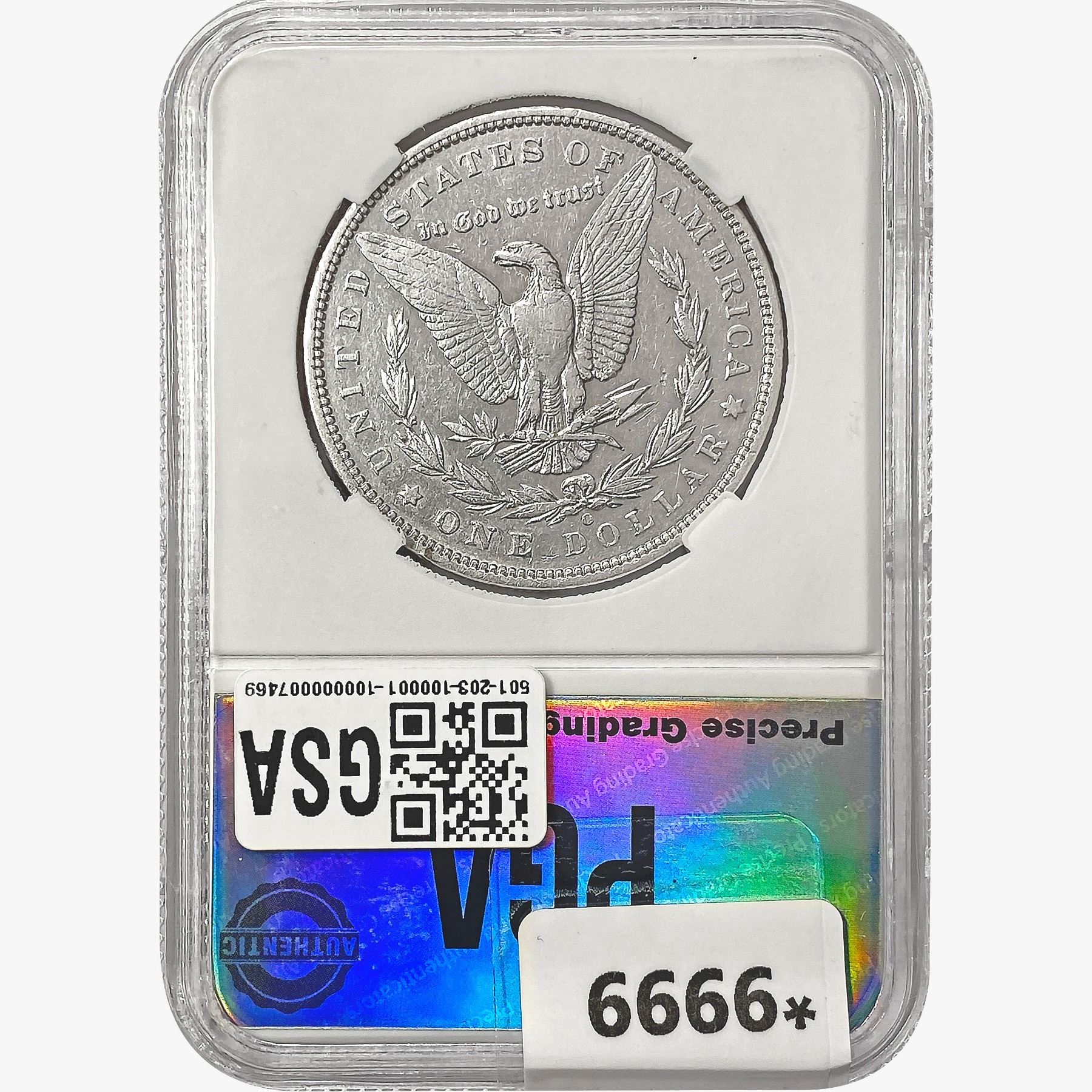 COINS AND CURRENCY LISTED IN GSA’S CATALOG AS GRADED AND ENCAPSULATED BY PCGS, NGC, ANACS, ICG, PCGS CURRENCY, PMG, PCGS BANKNOTE GRADING, CMC OR ANY OTHER THIRD-PARTY GRADING SERVICE ARE LIKEWISE SOLD “AS-IS” EXCEPT AS EXPRESSLY SET FORTH HEREIN. ALL THIRD-PARTY GRADING SERVICE GUARANTEES, INCLUDING AUTHENTICITY, ARE THE SOLE RESPONSIBILITY OF THE THIRD-PARTY GRADING SERVICE AND NOT WARRANTIES OR GUARANTEES OF GSA. BIDDERS SHOULD CONTACT THESE THIRD-PARTY GRADING SERVICES DIRECTLY WITH RESPECT TO ANY CLAIMS OR QUESTIONS THEY MAY HAVE CONCERNING THEIR GUARANTEES AND WARRANTIES. BIDDERS ACKNOWLEDGE AND AGREE THAT AUCTIONEER IS NOT BOUND BY OR LIABLE FOR ANY OPINION OR CERTIFICATION BY ANY THIRD-PARTY GRADING SERVICE. REMOVAL OF A PRODUCT FROM ITS PROTECTIVE CASING OR HOLDER OR ALTERATION OF ANY COIN HOLDER WAIVES ALL RIGHTS CONCERNING THE PRODUCT CONTAINED THEREIN.