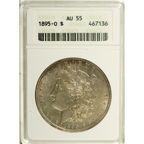 <B>1895-O S$1 AU55 ANACS.</B></I> Well struck with minor but distinct highpoint wear. The still-lustrous fields have lavender-blue patina and delicate golden accents. An immensely appealing semi-key example.<BR><BR><b>Shipping:</b> Coins & Currency (<a target="_blank" href="http://www.heritageauctions.com/common/shipping.php">view shipping information</a>)