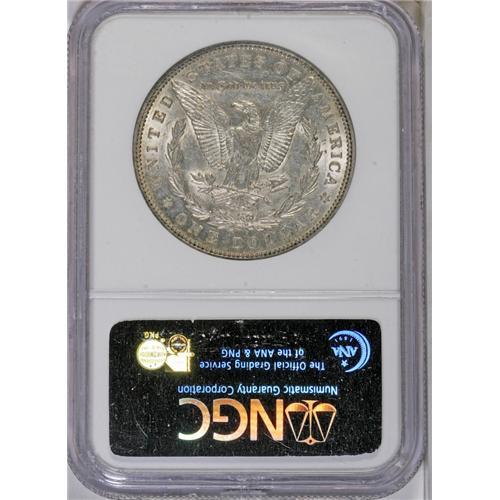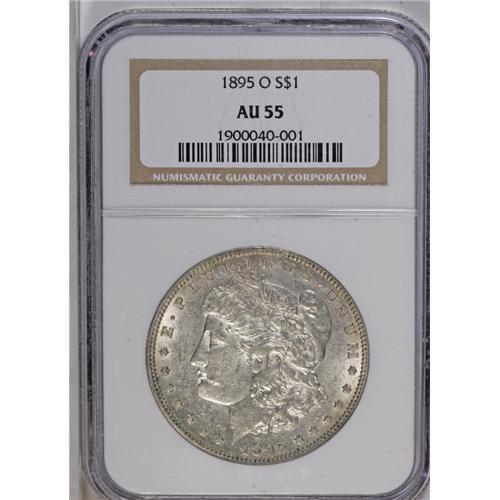 <B>1895-O<img border='0' src='http://www.heritagecoins.com/images/star.gif' width=10 height=10>$1> AU55 NGC.</B></I> Light highpoint wear is partly disguised by a typical strike. The silver-violet surfaces retain almost all of their original luster. A significant abrasion is noted just to the right of Liberty's lips.<BR><I>From The Clifton Rodenburg Collection.</B></I>