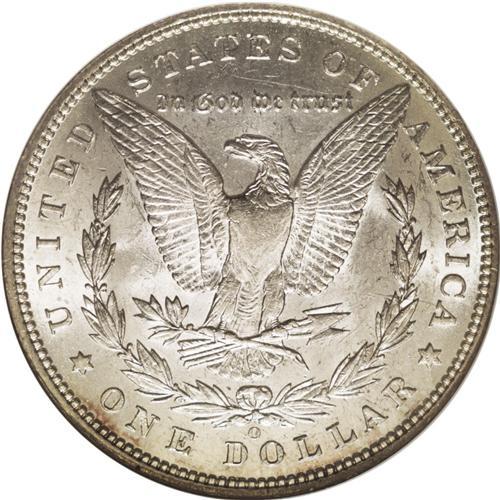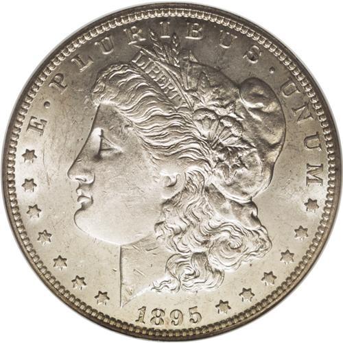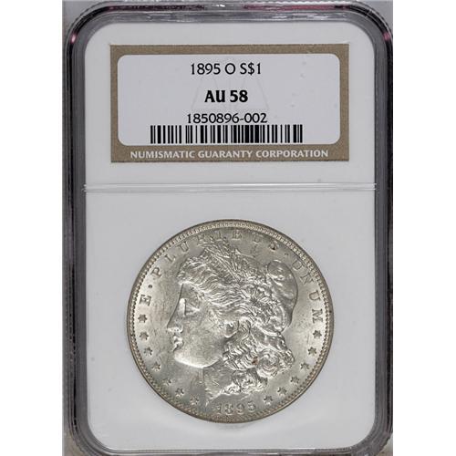 <B>1895-O<img border='0' src='http://www.heritagecoins.com/images/star.gif' width=10 height=10>$1> AU58 NGC.</B></I> A trace of friction blends with the soft strike over the ear, making the friction difficult to spot. This is an elusive date, especially in a state of high preservation. Largely untoned with two small spots of red toning on the obverse.