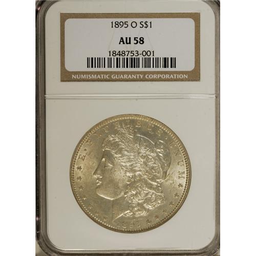 <B>1895-O S$1 AU58 NGC.</B></I> The 1895-O is the most difficult New Orleans Morgan dollar to acquire in Mint State, and the present piece is an affordable substitute with nearly all the luster of an Uncirculated example. Any friction present is trivial, and the light almond-gold toning helps confirm the originality. A couple of moderate marks are distant from the focal points.<BR><BR><b>Shipping:</b> Coin/Currency (<a target="_blank" href="http://www.heritageauctions.com/common/shipping.php">view shipping information</a>)