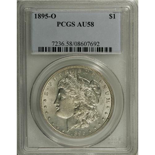 <B>1895-O S$1 AU58 PCGS.</B></I> Light highpoint rub on the eagle's breast and other design highpoints barely separate this brilliant silver-white coin from Mint State. The few tiny, undistracting abrasions are consistent with the grade and a short spate in circulation. An appealing coin, and a good alternative to lower Mint State grades.<BR><BR><b>Shipping:</b> Coin/Currency (<a target="_blank" href="http://www.heritageauctions.com/common/shipping.php">view shipping information</a>)