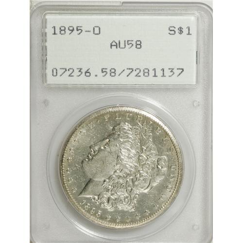 <B>1895-O S$1 AU58 PCGS.</B></I> Only the slightest trace of rub separates this untoned piece from Mint State, but essentially all of the luster is still present, and the eye appeal is great. Considerable prooflikeness is noted on each side. Certified in a first-generation small-size holder.<BR><BR><b>Shipping:</b> Coins & Currency (<a target="_blank" href="http://www.heritageauctions.com/common/shipping.php">view shipping information</a>)