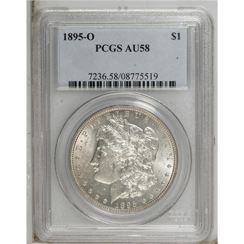 <B>1895-O S$1 AU58 PCGS.</B></I> This is a fully white coin with just a hint of rub on the highest points of the design and a considerable amount of luster. Most 1895-O dollars entered circulation and many stayed there, with the result that Mint State pieces are difficult to find and expensive once found. Appealing AU58 examples like this piece are therefore a reasonable alternative for collectors who wish to complete a high grade set but may not be able to afford the five figure price an uncirculated coin would demand.<BR><BR><b>Shipping:</b> Coins & Currency (<a target="_blank" href="http://www.heritageauctions.com/common/shipping.php">view shipping information</a>)