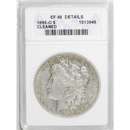 <B>1895-O<img border='0' src='http://www.heritagecoins.com/images/star.gif' width=10 height=10>$1>--Cleaned--ANACS. XF45 Details.</B></I> A lightly worn gold-gray example that has partly retoned. Various handling marks and hairlines appear in the fields.