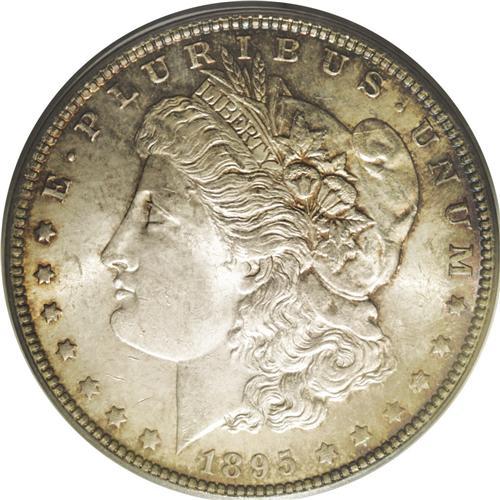 <B>1895-O<img border='0' src='http://www.heritagecoins.com/images/star.gif' width=10 height=10>$1> MS62 PCGS.</B></I> The 1895-O is one of the Morgan dollar midseries "stoppers" in Mint State. Most examples found are in XF or AU condition. True Mint State examples, such as the present specimen, are rare. This pretty piece offers light pinkish-copper toning on both sides, with good luster that is only somewhat subdued. While not fully struck through the centers, the strike is better than usual, with slight softness. A few light reeding marks and abrasions on the cheek and chin account for the MS62 assessment, but the reverse appears choice for the grade, and the overall eye appeal is high. Population: 37 in 62, 35 finer (6/06).