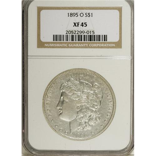 <B>1895-O S$1 XF45 NGC.</B></I> Untoned and boldly struck, with even highpoint wear and wispy hairlines on each side. A couple of horizontal scratches are noted in the upper left obverse field, one of them extending through Liberty's eye.<BR><BR><b>Shipping:</b> Coins & Currency (<a target="_blank" href="http://www.heritageauctions.com/common/shipping.php">view shipping information</a>)
